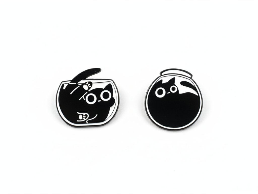 Kdo by odolal koťátkům, která se všude vejdou? 🐾 Kolekce "Kotě v misce" přináší hravé motivy koček, které se rozhodly prozkoumat misky, sklenice i akvária – a očividně v nich uvízly! 😹 Tyto elegantní černo-bílé piny jsou perfektní kombinací minimalismu a roztomilosti, které potěší každého kočkomila. Připni si malou dávku kočičí neplechy na batoh, bundu nebo tašku a bav se s tímto nezbedným designem!